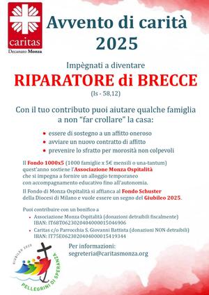 Negli stessi momenti raccoglieremo le offerte a sostegno del progetto abitativo per l’avvento.