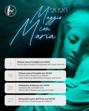 ore 20.30 s. Rosario, re 21.00 s. Messa